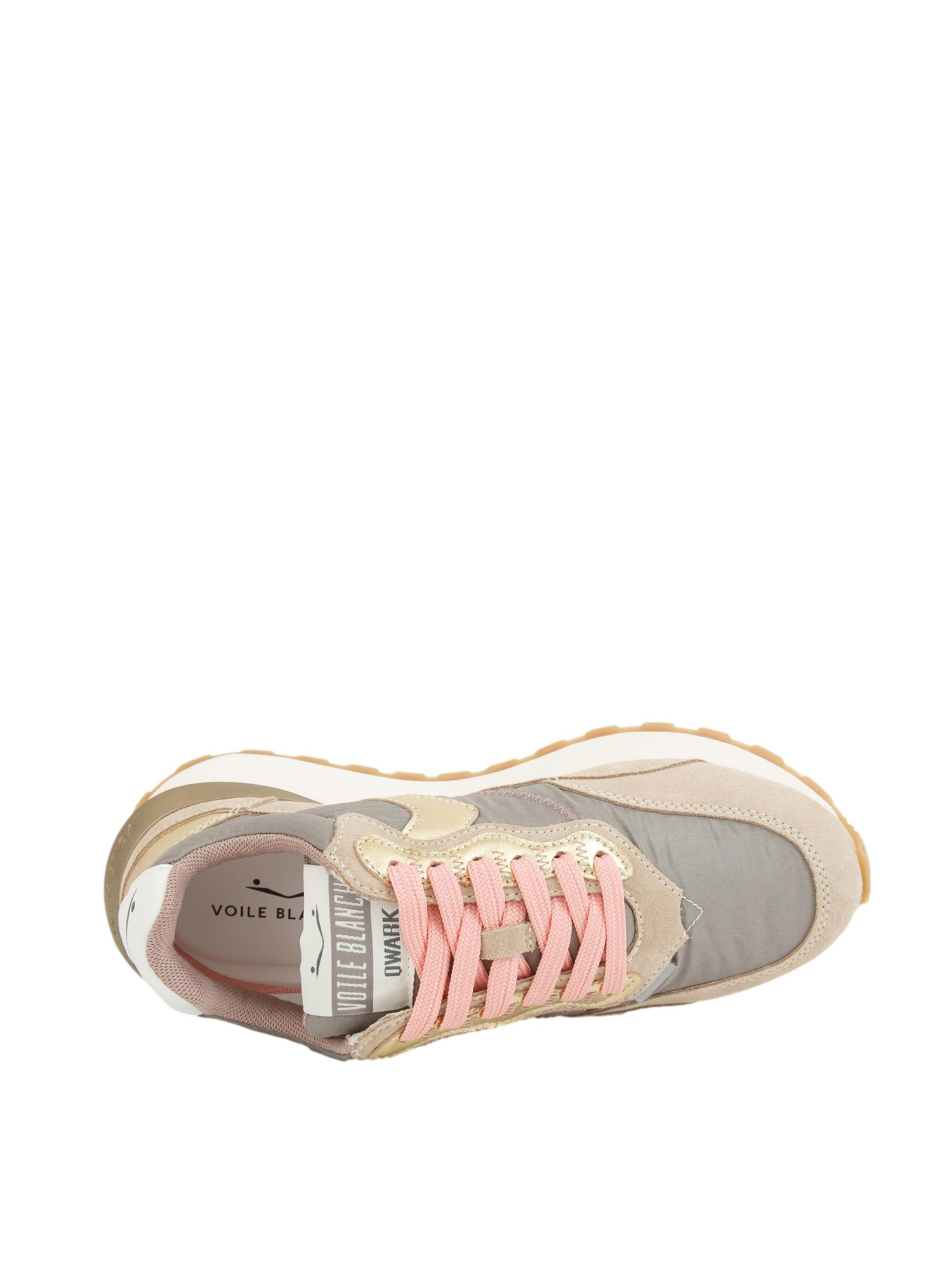 Sneakers donna Voile Blanche in tessuto tecnico beige con inserti in suede e pelle