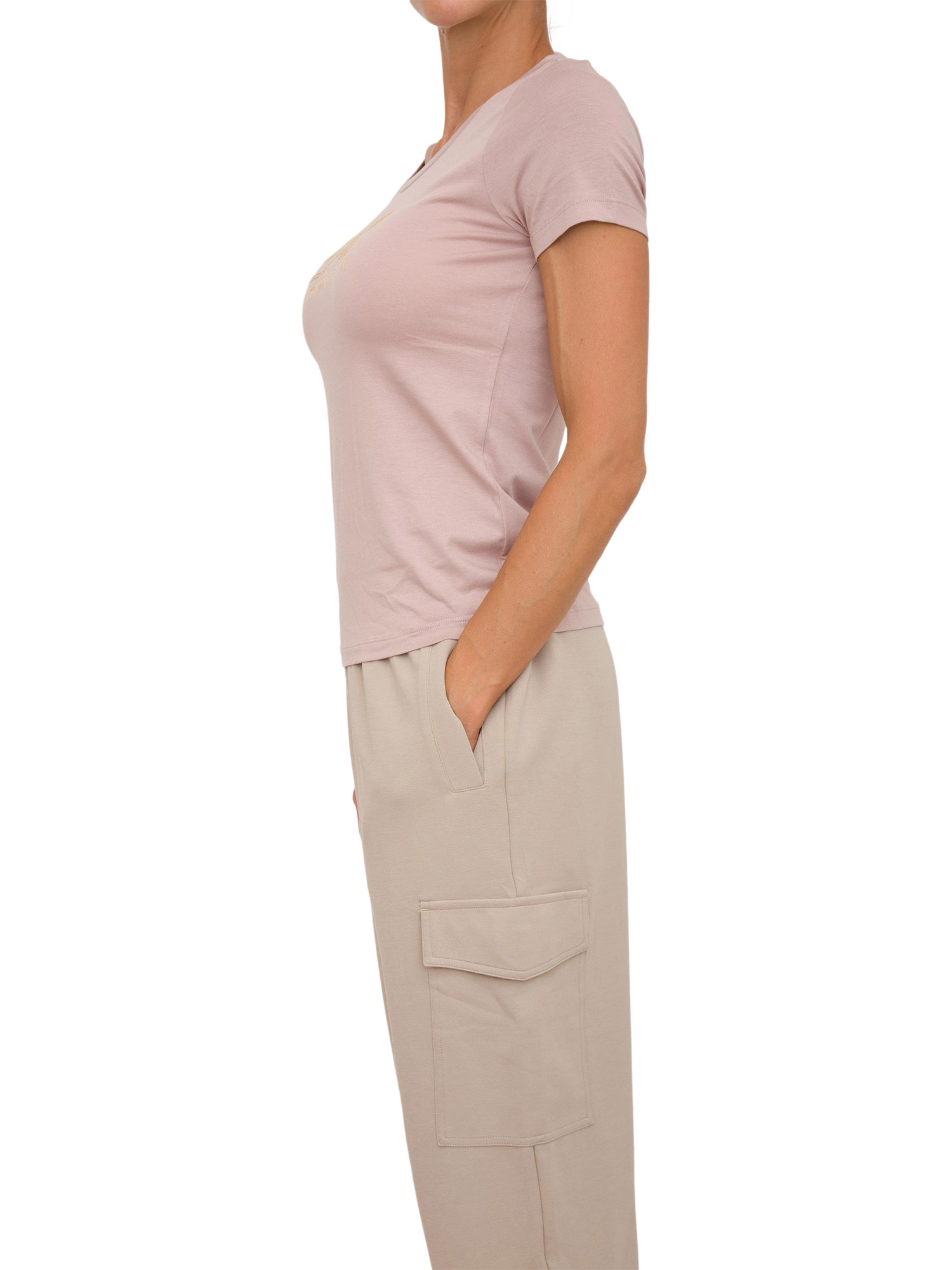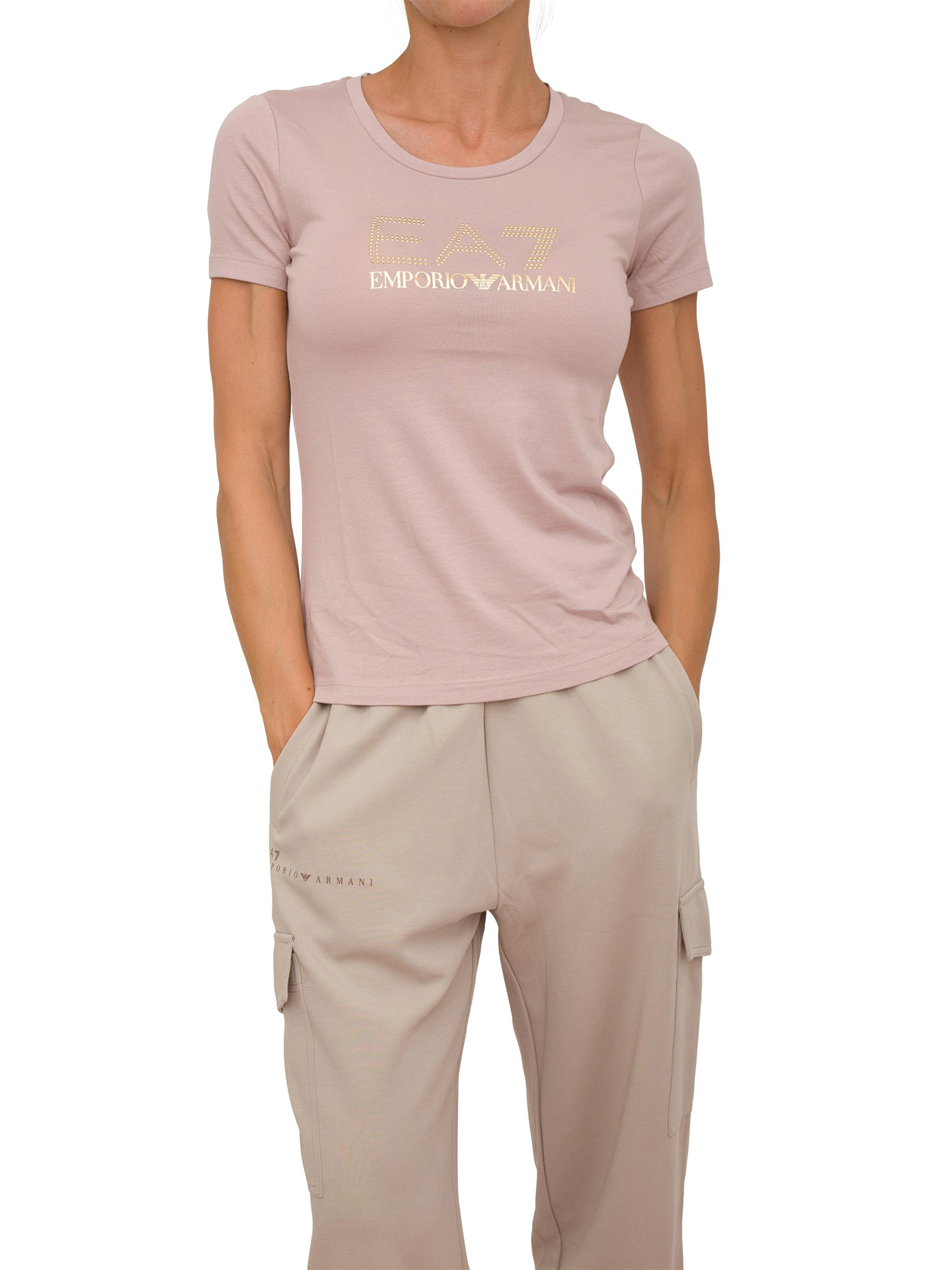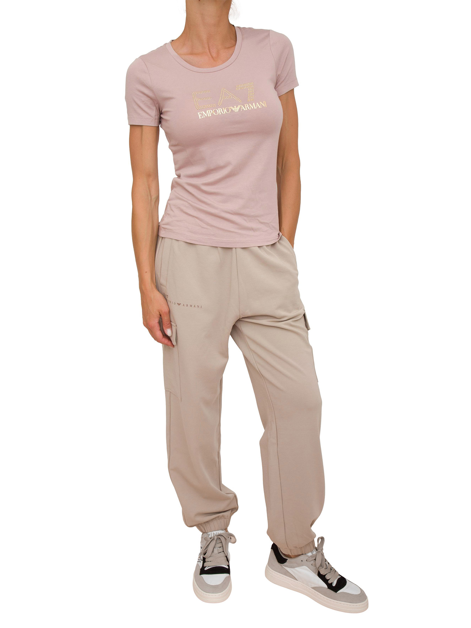 T-shirt donna maxi logo EA7 Emporio Armani in misto cotone e modal rosa