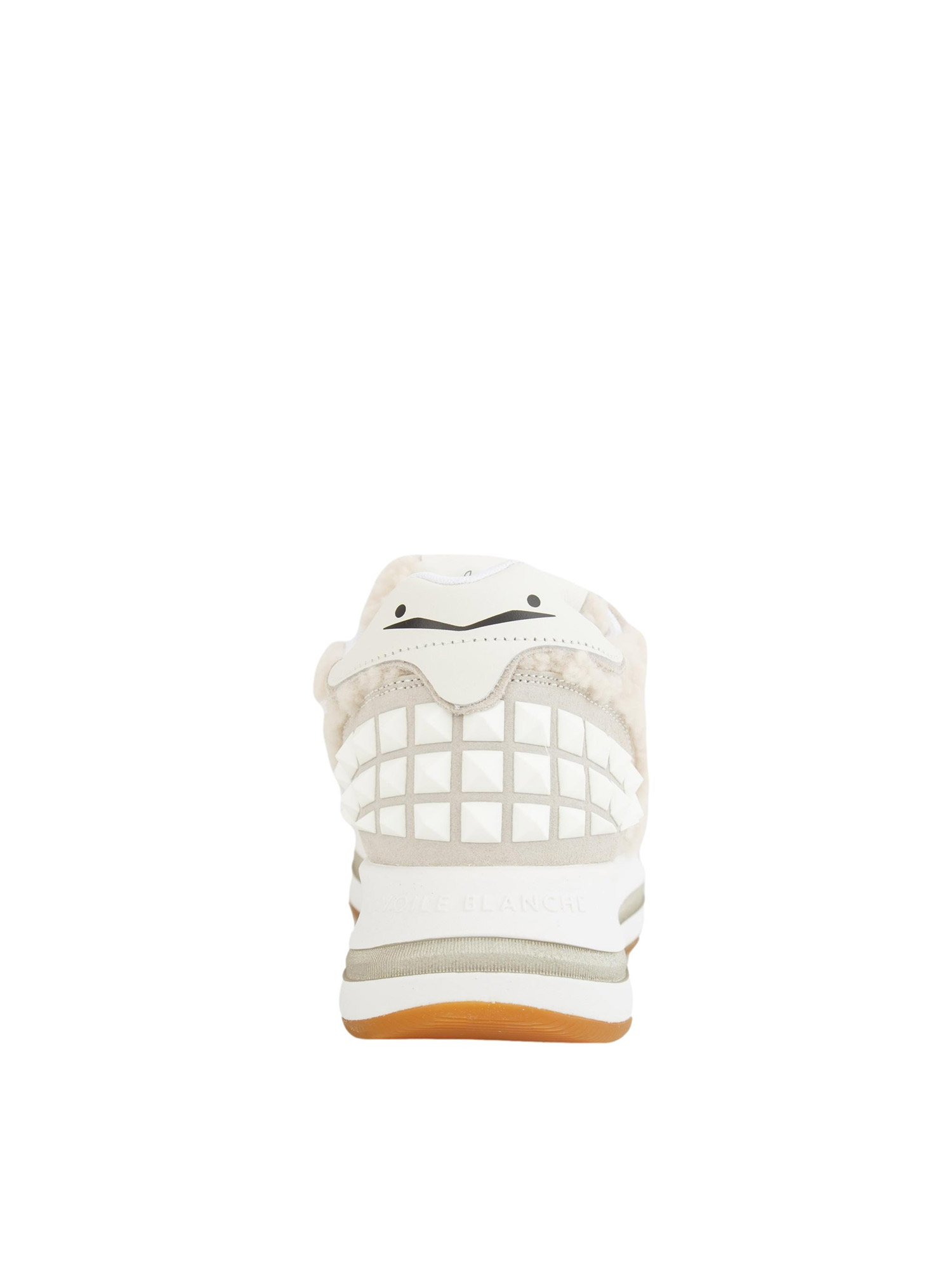 Brand: VOILE BLANCHESneakers donna Voile Blanche realizzate in suede e sintetico effetto ricciolino. Studs gommose sul toppone. Chiusura con lacci, fodera e soletta in pelle, fondo in gomma a doppia altezza con inserto a contrasto.