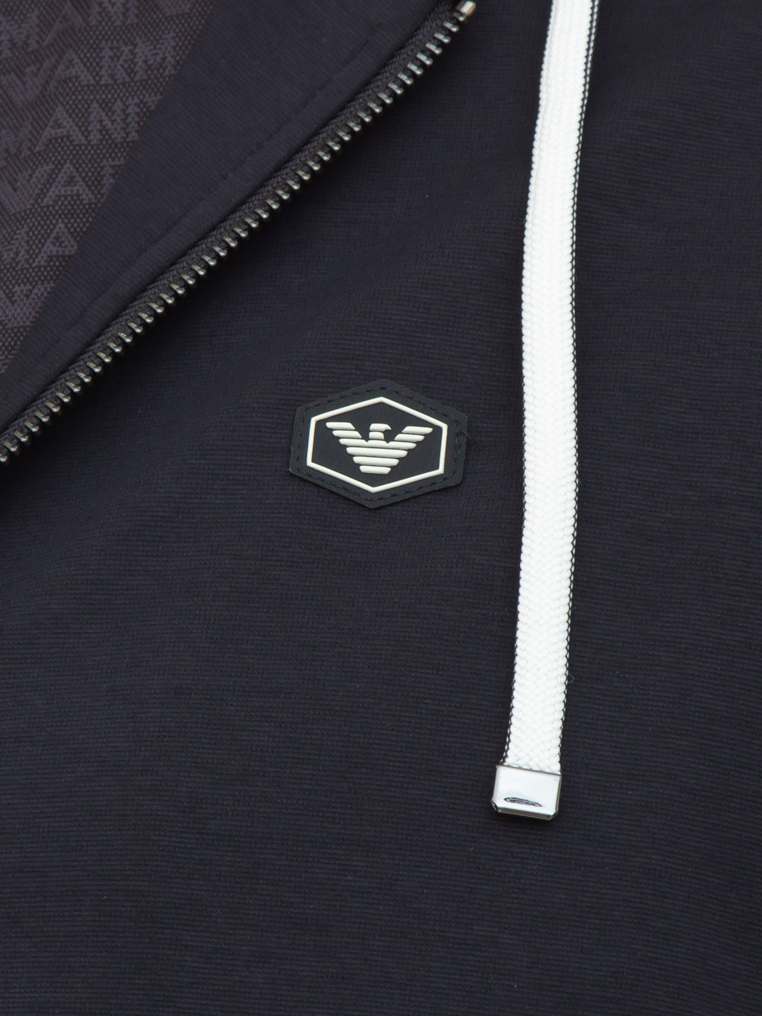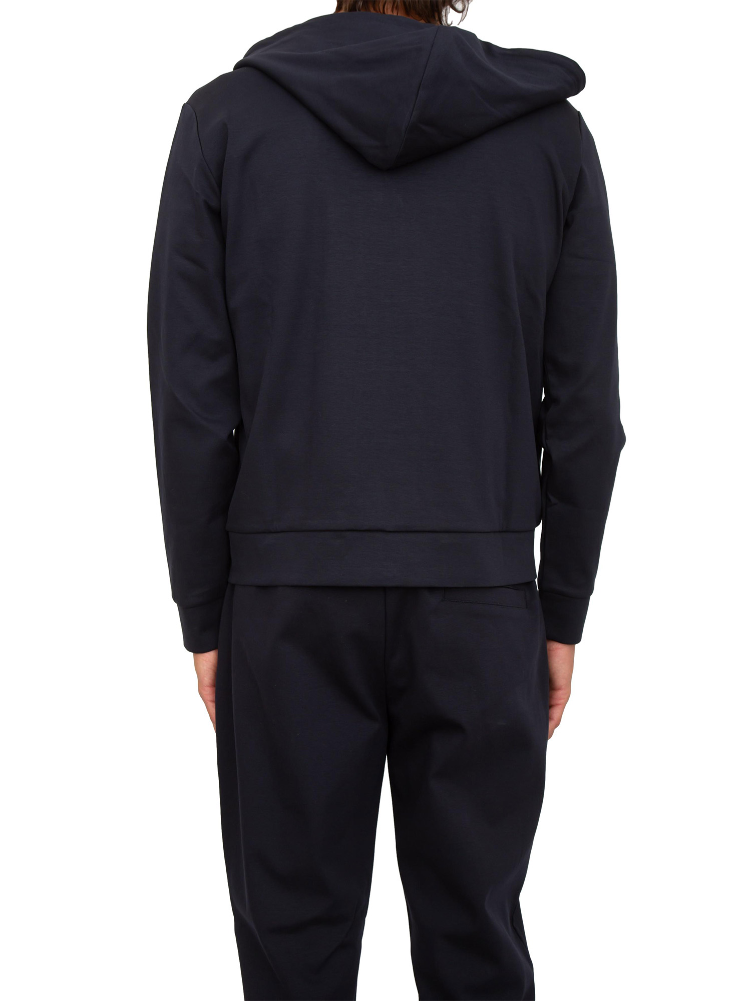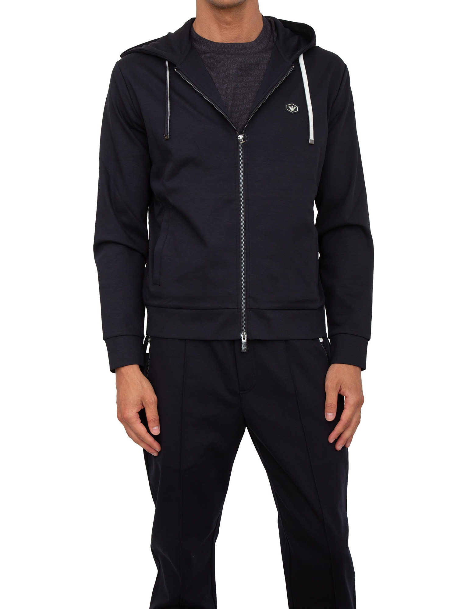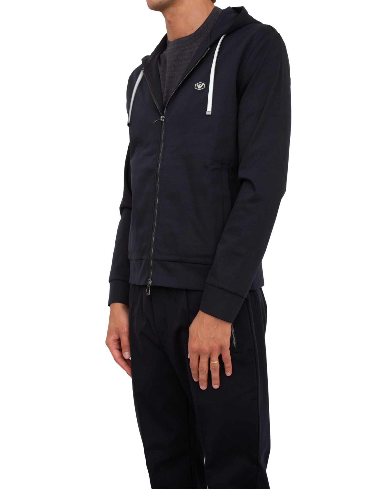 Felpa uomo Emporio Armani con cappuccio e zip in tessuto punto Roma blu