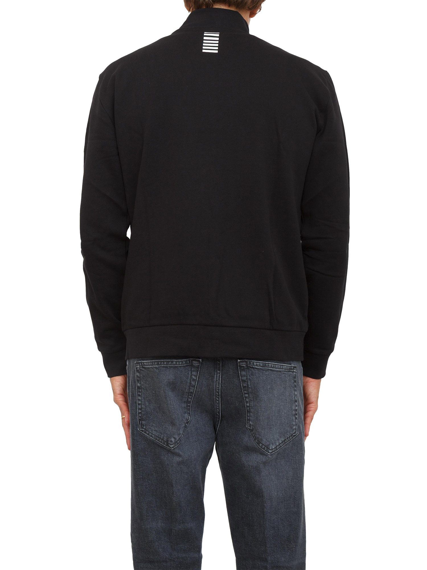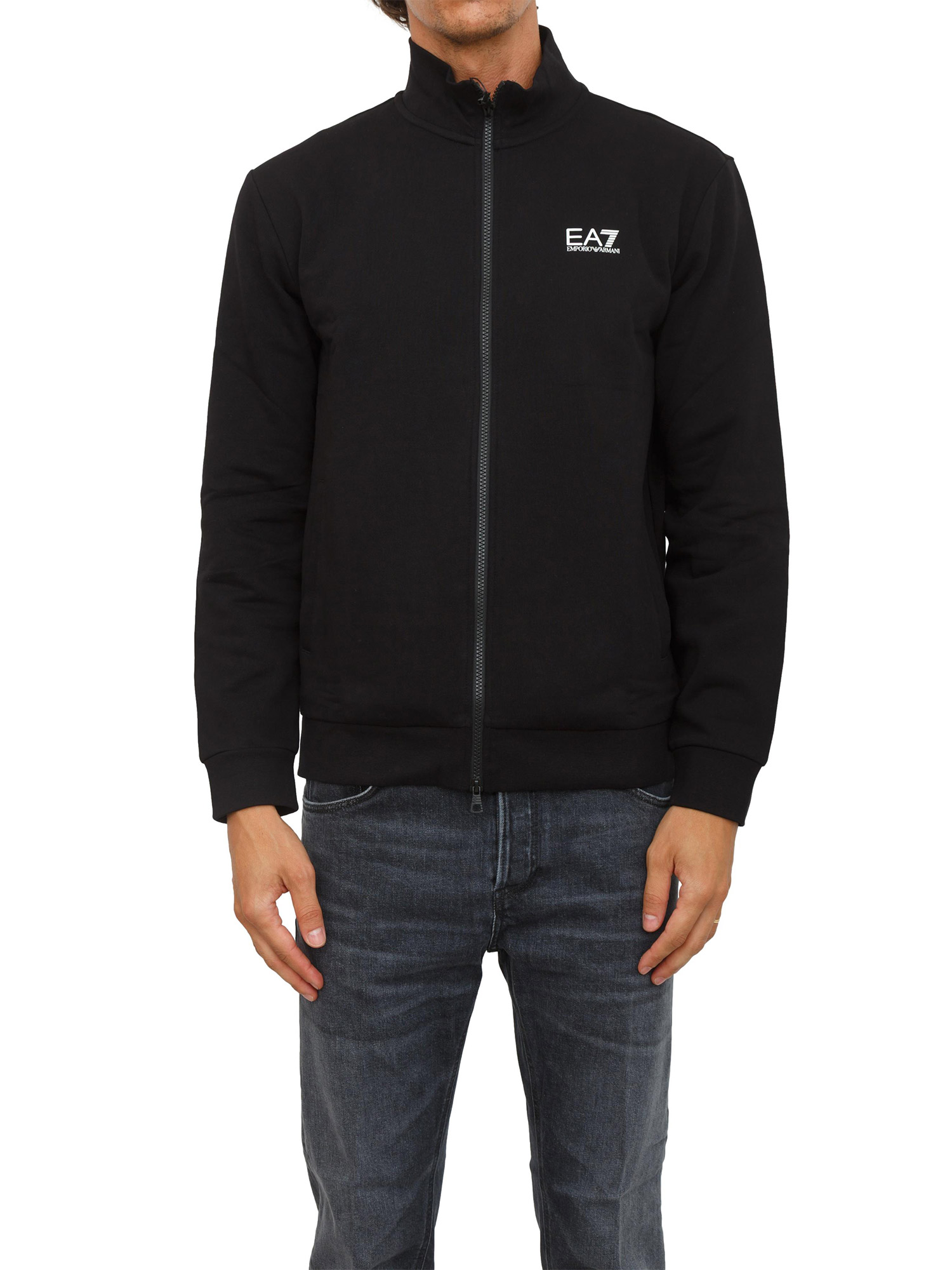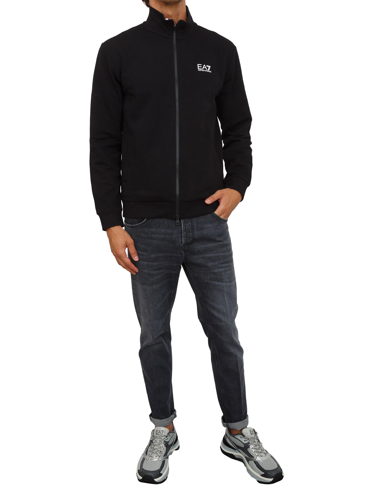 Brand: EA7 EMPORIO ARMANIFelpa EA7 Core Identity Sweatshirt da uomo in misto cotone e poliestere, a manica lunga, con collo alto, piccolo logo sul petto e piccola grafica sul retro collo in stampa gommata a contrasto colore, chiusura centrale full zip a doppio cursore e tasche laterali a filo.
