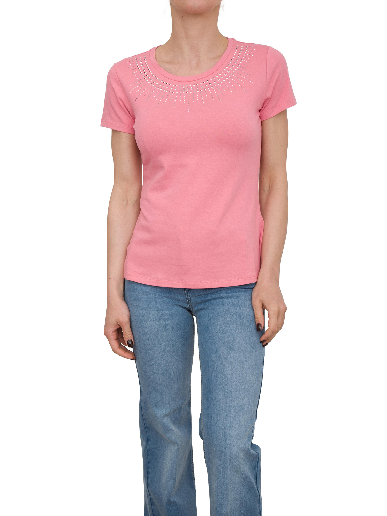 T-shirt rosa Liu Jo con logo e strass