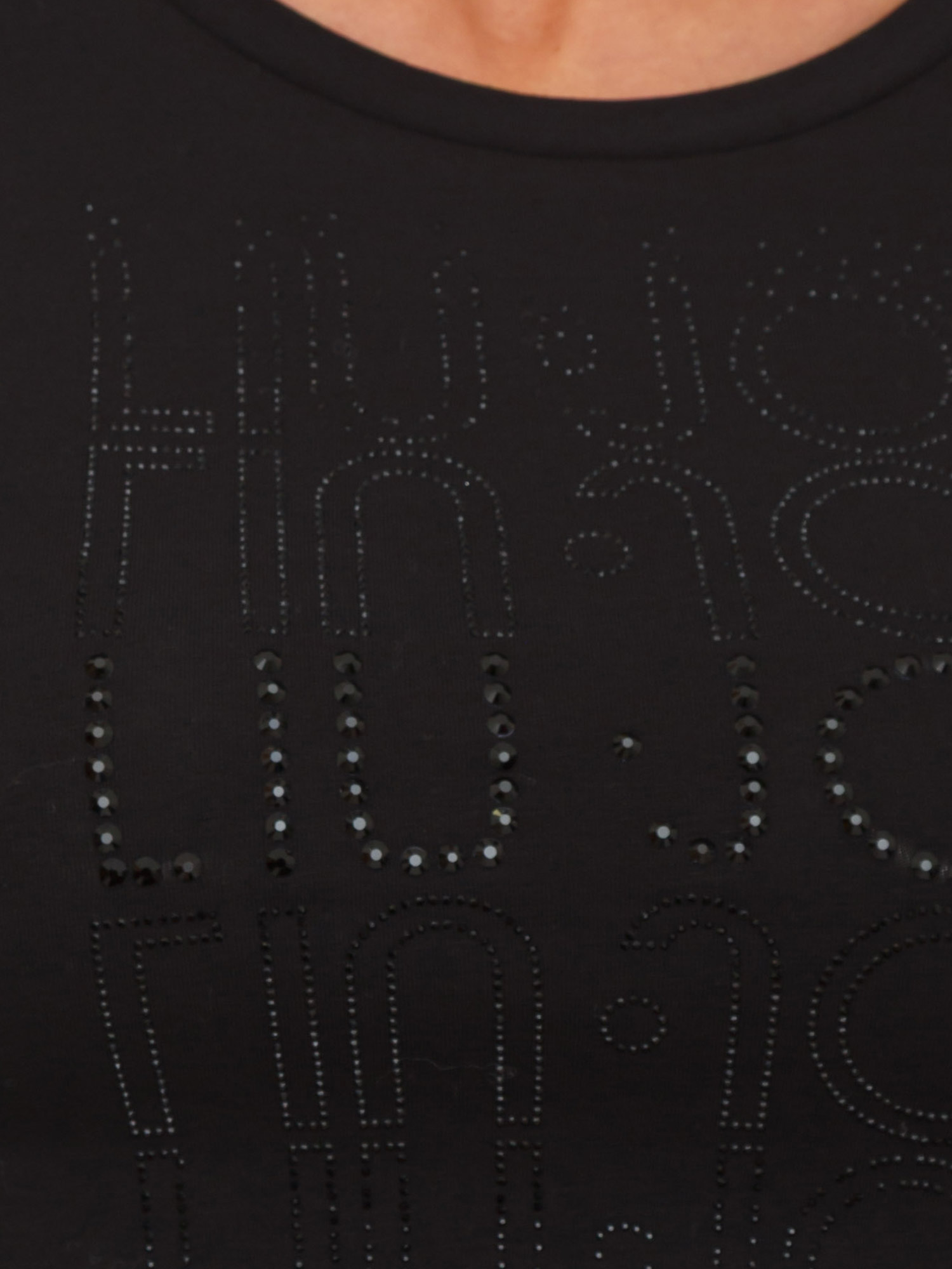 T-shirt Liu Jo donna in cotone nero con strass logo