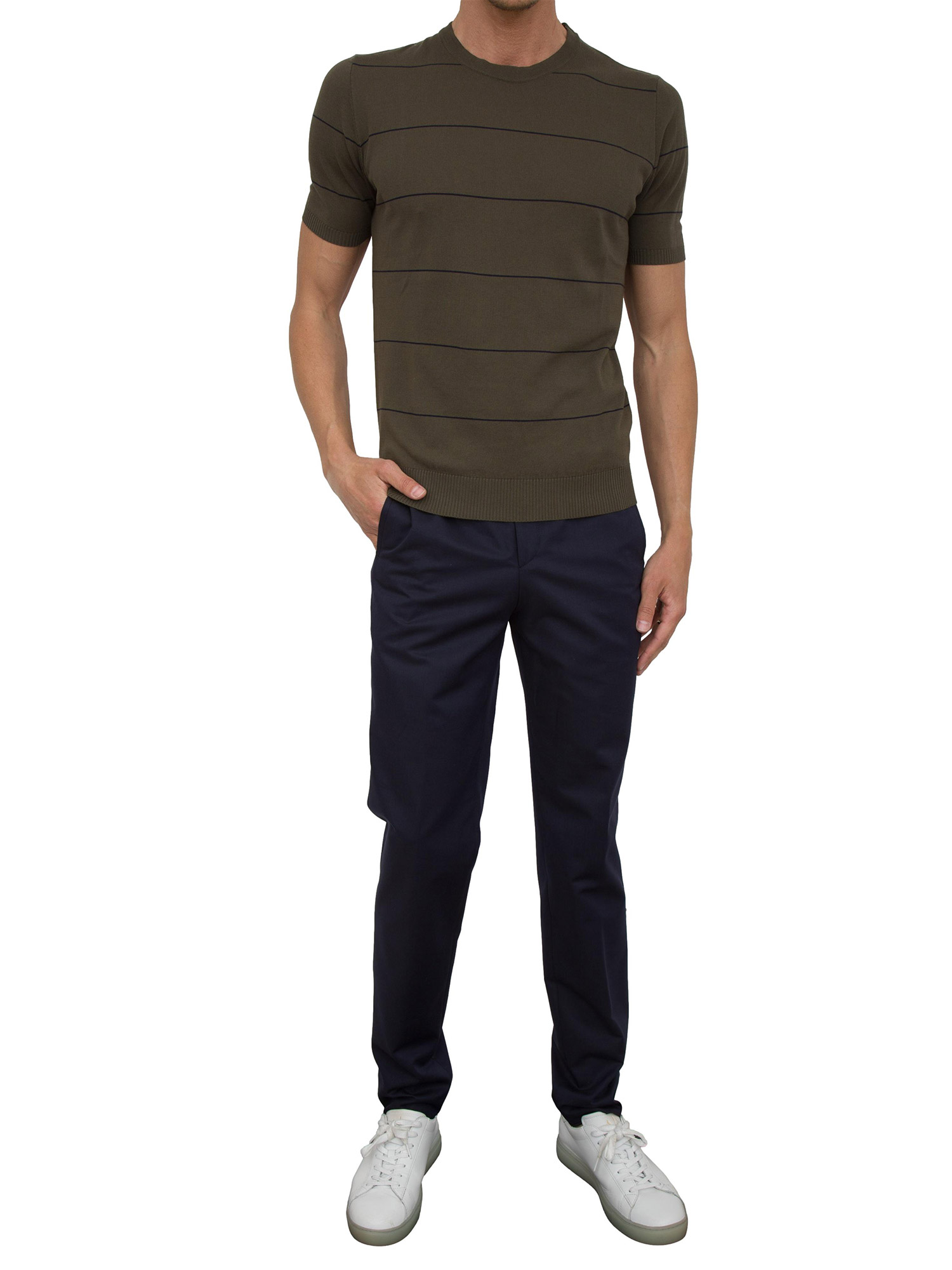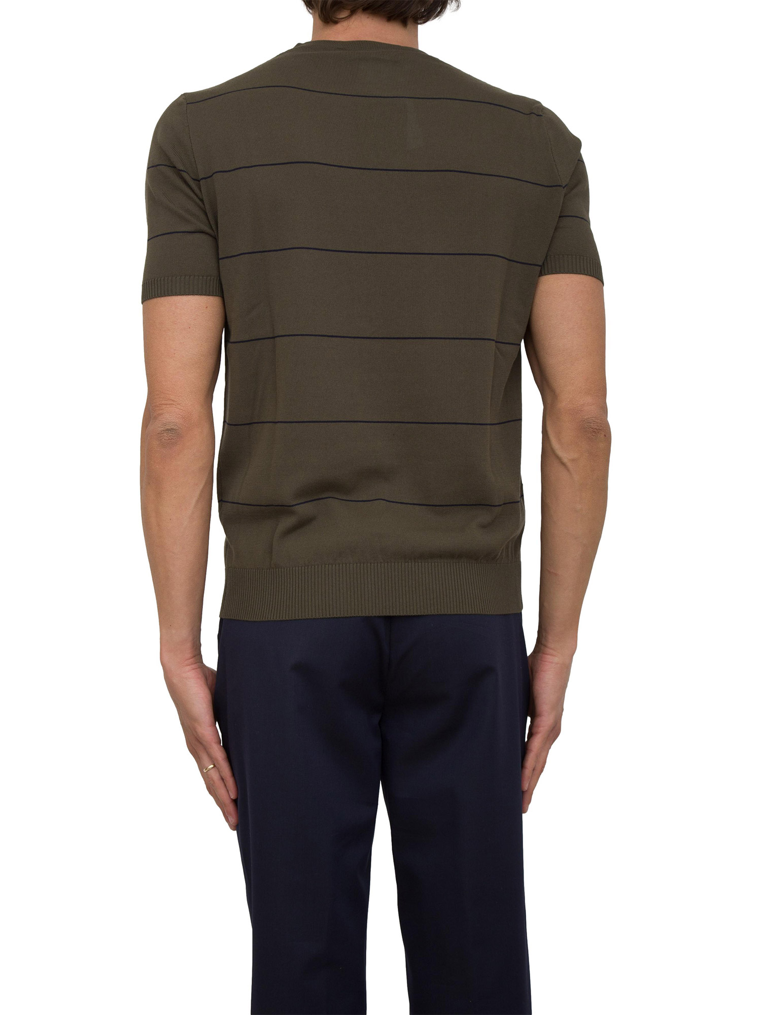 Maglia uomo a maniche corte Aiace Galassi in cotone verde con righe a contrasto