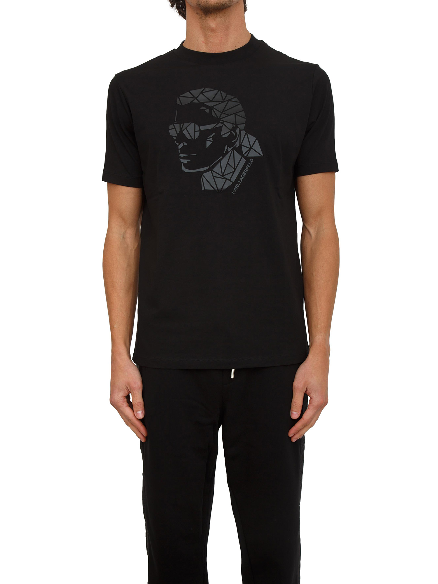 Brand: K.LAGERFELDT-shirt uomo Karl Lagerfeld realizzata in pregiato cotone con vestibilità slim e maniche corte. Design con volto Karl Lagerfeld applicato sul davanti con inserti gommati a struttura geometrica. Grintosa e cool da abbinare sotto una felpa o un giubbino di pelle. Il modello è alto 1.90m e indossa la taglia L.
