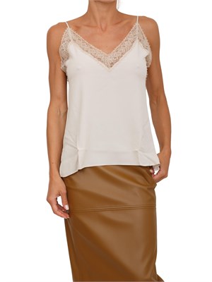 Top sottoveste Marella in crêpe de Chine di misto seta verde con pizzo