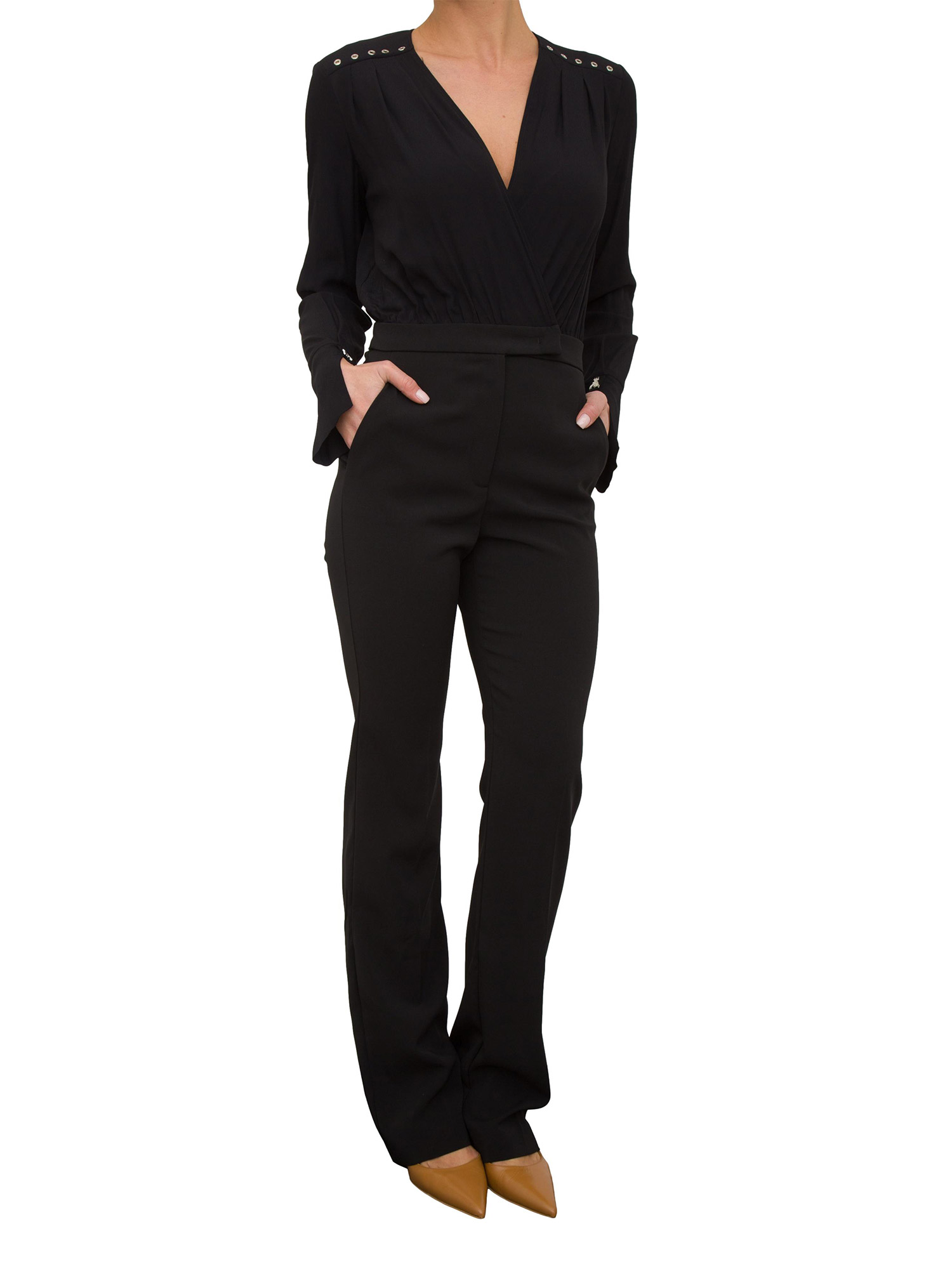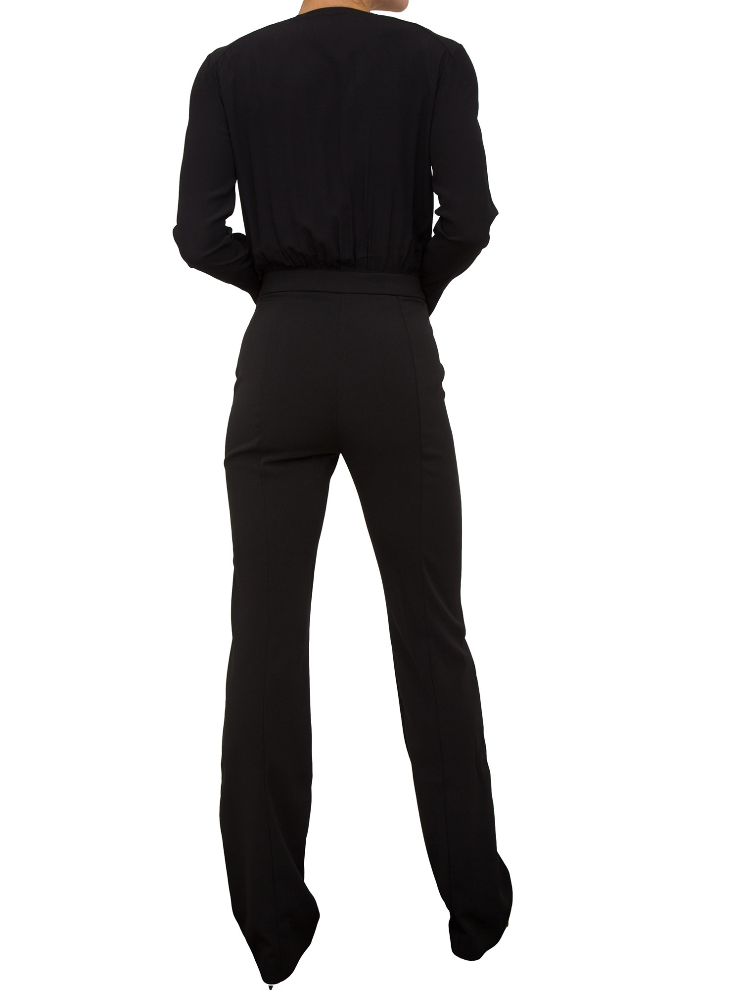Brand: PATRIZIA PEPERealizzata in texture cady nera, questa tuta esalta il tuo stile con un design a portafoglio, scollo a V e maniche lunghe con spacchetti sui polsini. La vita aderente e il taglio dritto valorizzano la silhouette, mentre il dettaglio con occhiello metallico aggiunge un tocco sofisticato. Completa di chiusura nascosta e pratiche tasche laterali, è perfetta per un look raffinato e moderno. Disponibile su mattsport.it